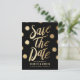 Faux Gold Foil Dots Modern Black Save the Date Announcement Postcard