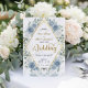 Faux Gold Foil Geometric Marble Blue Floral Invitation