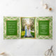 Faux Gold Foil Green Damask Wedding Photo Tri-Fold Invitation