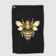 Faux Gold Foil Logo Bee Polygonal on Black Golf Towel