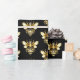 Faux Gold Foil Logo Bee Polygonal on Black Wrapping Paper