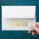 A charming glam envelope with big golden faux glitter polka dots inside and big "cheers" typography brush script o outside back bottom. Suitable for glamourous bachelorette parties, bridal showers, New Year parties and greeting cards, birthdays and anniversaries.