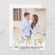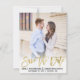 Send our portrait picture save the date cards with a modern brush script to let your guests know to block off your wedding date. You can choose from one of the available predesigned colour schemes, or you can select one of the flat coloured designs (with black text, for example) and then be able to change the colours to whatever custom colour you would like. Just click on the "Edit Design" button, click on the text you would like changed, and then add your custom colours. The background colour is customizable as well so that you can change your cards to exactly what you're wanting. Be sure to check out our large selection of photo save the date cards, postcards, and magnets by browsing our Picture Save the Date collection!