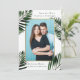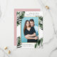 This classic tropical palm leaves with faux gold frame wedding save the date features a pretty pink back of the card.