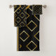 FAUX Gold Geometric Pattern with Monogram on BLACK Bath Towel Set