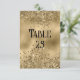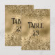 A wedding table number card featuring an elegant faux gold glitter and foil background.
