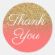 Faux Gold Glitter Coral Ombre Thank You Classic Round Sticker