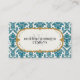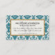 NOTE: This is a flat printed design. There is no actual glitter, gold metal or raised layers. COLOR PALETTE: glittery, shimmery turquoise teal blue, gold and soft white. DESIGN COLLECTION: Matching Business Cards, Card holders, and additional stationery items to match are perfect for personal use or professionals and businesses. Graphic design by Audrey Jeanne Roberts, this modern yet vintage style damask patterned image with a decorative floral design has a trendy faux glitter look. The frame is a scroll and dot pattern with an art nouveau or art deco influence. The damasks stylistically rendered flower elements are laid over a creamy white background colour. A bracket style frame has polka dots and a calligraphy swirl type border. There is a wide range of colour combinations available with this pattern.