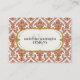 NOTE: This is a flat printed design. There is no actual glitter, gold metal or raised layers. COLOR PALETTE: glittery, shimmery persimmon orange, gold and soft white. DESIGN COLLECTION: Matching Business Cards, Card holders, and additional stationery items to match are perfect for personal use or professionals and businesses. Graphic design by Audrey Jeanne Roberts, this modern yet vintage style damask patterned image with a decorative floral design has a trendy faux glitter look. The frame is a scroll and dot pattern with an art nouveau or art deco influence. The damasks stylistically rendered flower elements are laid over a creamy white background colour. A bracket style frame has polka dots and a calligraphy swirl type border. There is a wide range of colour combinations available with this pattern.