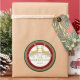 A hand drawn and designed modern double reindeer motif with a pair of deer and antlers was graphically designed to have a gold metallic look with touches of glitter and a swig of holly leaves. Created to seal your Christmas Card or Party Invitations Envelopes in style. Simple. Elegant. Sophisticated. An emerald green border with a double border of gold glitter and a deep burgundy background sets off the design and your personalized names and year. Add a touch of elegance to every Christmas package! Artwork by Audrey Jeanne Roberts, copyright, all rights reserved.