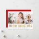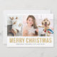 Merry Christmas | Spread holiday cheer with a little sparkle stylish multi-photo holiday card. This modern Christmas card features faux gold glitter modern typography with three photo collage. Personalize by adding your details. This custom photo collage Christmas card is available in other cardstock.