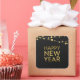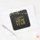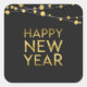 Simple and elegant faux gold new year square stickers featuring lights against a dark grey/almost black background with the words "Happy New Year". It's the perfect stickers for the new year holidays.