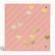 Elegant and cute faux gold hearts on a pink stripes pattern background.