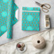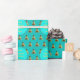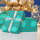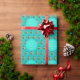 Faux Gold Merry Christmas Tree Pattern Turquoise Wrapping Paper