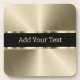 Professional looking coasters featured in a gold metallic look with a black centre strip where you can add your any text you like. This modern simple design will add class to your home or business... ✔NOTE: ONLY CHANGE THE TEMPLATE AREAS NEEDED! 😀 If needed, you can remove the text and start fresh adding whatever text and font you like. 📌If you need further customization, please click the "Click to Customize further" or "Customize or Edit Design" button and use our design tool to resize, rotate, change text colour, add text and so much more. ⭐This Product is 100% Customizable. Graphics and / or text can be added, deleted, moved, resized, changed around, rotated, etc... ⭐99% of my designs in my store are done in layers. This makes it easy for you to resize and move the graphics and text around so that it will fit each product perfectly. 📌 (Please be sure to resize or move graphics if needed before ordering) You can also "TRANSFER DESIGN" on other Zazzle products and adjust the design to fit most of Zazzle items. (button is down on the right side of the page) This design is made with high resolution vector and/or digital graphics for a professional print. 📌NOTE: (THIS IS A PRINT. All #Zazzlemade product designs are "prints" unless otherwise stated under "About This Product" on the left side of this page) The design will be printed "EXACTLY" like you see it on the screen and on the product...so please make sure when you do your changes on the resizing of any of the graphics or text that it fits in the areas correctly and that your spelling and wording is how you like it to be in size, colour and font. If you have any questions about the "DESIGN ONLY" or need help please contact me at ✉ siggyscott@comcast.net or visit my store link: https://www.zazzle.com/store/designsbydonnasiggy (Copy and Paste) I'll be happy to help. 📌 ALL OTHER QUESTIONS (shipping, refund, the printing, the product, etc...) please contact Zazzle or the Maker ⭐DIRECTLY⭐. Thank you for the support and stopping by my store - DesignsbyDonnaSiggy. © Donna Siegrist (🥇 ART DESIGN by Donna Siegrist) ⭐⭐⭐ ZAZZLE promises 100% satisfaction. If you don't absolutely love it, Zazzle will take it back! ⭐⭐⭐ 1-888-8ZAZZLE (1-888-892-9953) Phone hours: Mon - Fri: 9AM - 5PM PT (12PM - 8PM ET)
