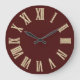 Faux Gold Metallic Minimal Roman Numbers Burgundy Large Clock