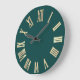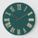 Faux Gold Metallic Minimal Roman Numbers Teal Large Clock