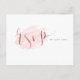 Hand lettered RSVP script in faux rose gold foil color on blush pink watercolor background, elegant and stylish, great modern simple personalized wedding RSVP postcards.