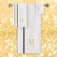 Faux Gold Monogrammed Black Racing Stripes White Bath Towel Set
