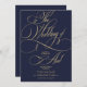 Stylish romantic elegance script simple dark midnight navy blue and faux gold classic wedding invitation suitable for all seasons. Easy to personalize with your details!