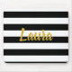 Personalize faux (not foil) gold script with name or other desired text in the centre. Black and white stripes are in the background.