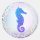 faux holographic blue seahorse logo classic round sticker