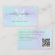 This business card features a modern faux holographic iridescent background with monogram on the front and QR code on the back . Personalize it with your own text.