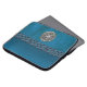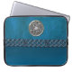 Faux Leather and Metal Celtic Knot Laptop Sleeve. Cyan blue leather like sleeve with a silver Celtic Knot and a blue Celtic chain. Celtic knots are a traditional Celtic art form, are usually characterized by having no beginning and no end, and symbolize eternal love and the never-ending cycle of life. It has been found to be a favourite symbol in many ancient civilizations and with many practitioners of magic or mysticism today.