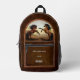 Backpack featuring a painting of two wild horses on a faux leather brown design. You can add your custom texts (optional). Great for a horse lover.