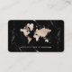 Perfect for anyone working in the field of travel, this luxurious business card features a faux light gold world map on a black marble look background.