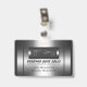 Metallic series: A stylish name badge for your auto sales company. Great for meet-ups and shows. Just upload your logo or use the silver auto logo provided. Then customise with your details and give a strap line or quote for that really professional feel. The design uses shiny metallic elements, looking a little like engine parts, for a focused sports, muscle and luxury feel. Together with the silver auto logo, the design style matches what your customers are looking for in an auto and so inspires confidence that you have the right one for them. And it's a cinch for you to personalize the details - just type them in!