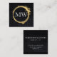 Faux Metallic Gold Velvet Black with Monogram Square Business Card