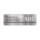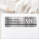 Faux arrière - plan argent métallique, nom, adresse et grand monogramme blanc avec règle noire.