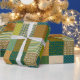 A roll of chic Giftwrap, with a Faux Patchwork pattern of tribal patterns, stripes and polka dots in Green, Rusty Red, Navy Blue and Old Gold; from the Posh & Painterly 'Jungle Drums" collection.