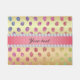 Doormat with a beautiful faux rainbow glitter polka dot spots on a shiny gold gradient background with a fake diamonds pretty pink gradient strip for you to personalize. A modern, glamourous, trendy gift - perfect for her.