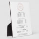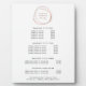 Elegant pricing and services stand design displays your services, price list or business information beneath a faux rose gold abstract circle logo, framing your name and/or business name. . Includes four customizable headings and body text fields, and space for your business contact information along the bottom. To adjust layout, enter your text and then use the Customize function to change positioning and font sizes.