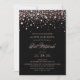 Faux Rose Gold Foil Confetti Black Bat Mitzvah Invitation