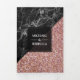 Faux Rose Gold Glitter Black Marble Wedding Photo Tri-Fold Invitation