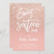 Faux rose gold glitter ombre typography Sweet 16 Invitation