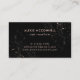 This stylish, modern business card features a trendy faux rose gold circle and splashes on a black marble look background, with matching rose coloured text.