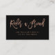 These stylish, modern referral cards feature a bold black background, with trendy faux rose gold handwritten script typography that says "Refer a Friend."