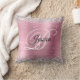 Faux Shiny Silver Glitter and Pink Foil Monogram Throw Pillow