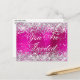 Faux Silver Glitter Hot Pink Birthday Invitation Postcard