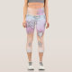Cute Capri leggings design featuring faux silver metallic stars on a pastel pink, blue and orange colour blend background. Experience comfort and style like never before with these captivating Capri leggings.