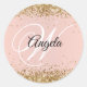 Faux Sparkly Gold Glitter Blush Monogram Classic Round Sticker