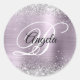Faux Sparkly Silver Glitter Lavender Foil Monogram Classic Round Sticker