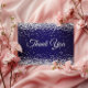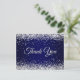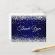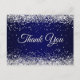 Faux Sparkly Silver Glitter Navy Blue Thank You Postcard
