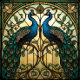 This digitally edited AI design showcases a stunning pair of mirrored peacocks framed in a faux stained-glass motif. The vibrant blues, greens, and jewel tones bring a touch of elegance and artistry to your projects—perfect for decoupage, wrapping paper, or creative home decor crafts.