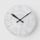 This unique, faux marble clock, looks realistic with faux engraving for clock numbers, minute marks, and name in hand lettered script. Silver grey with white texture background.