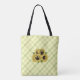 Be ready for spring with this colourful faux watercolor sunflower bouquet on coordinating plaid background. Design is on both sides of tote,